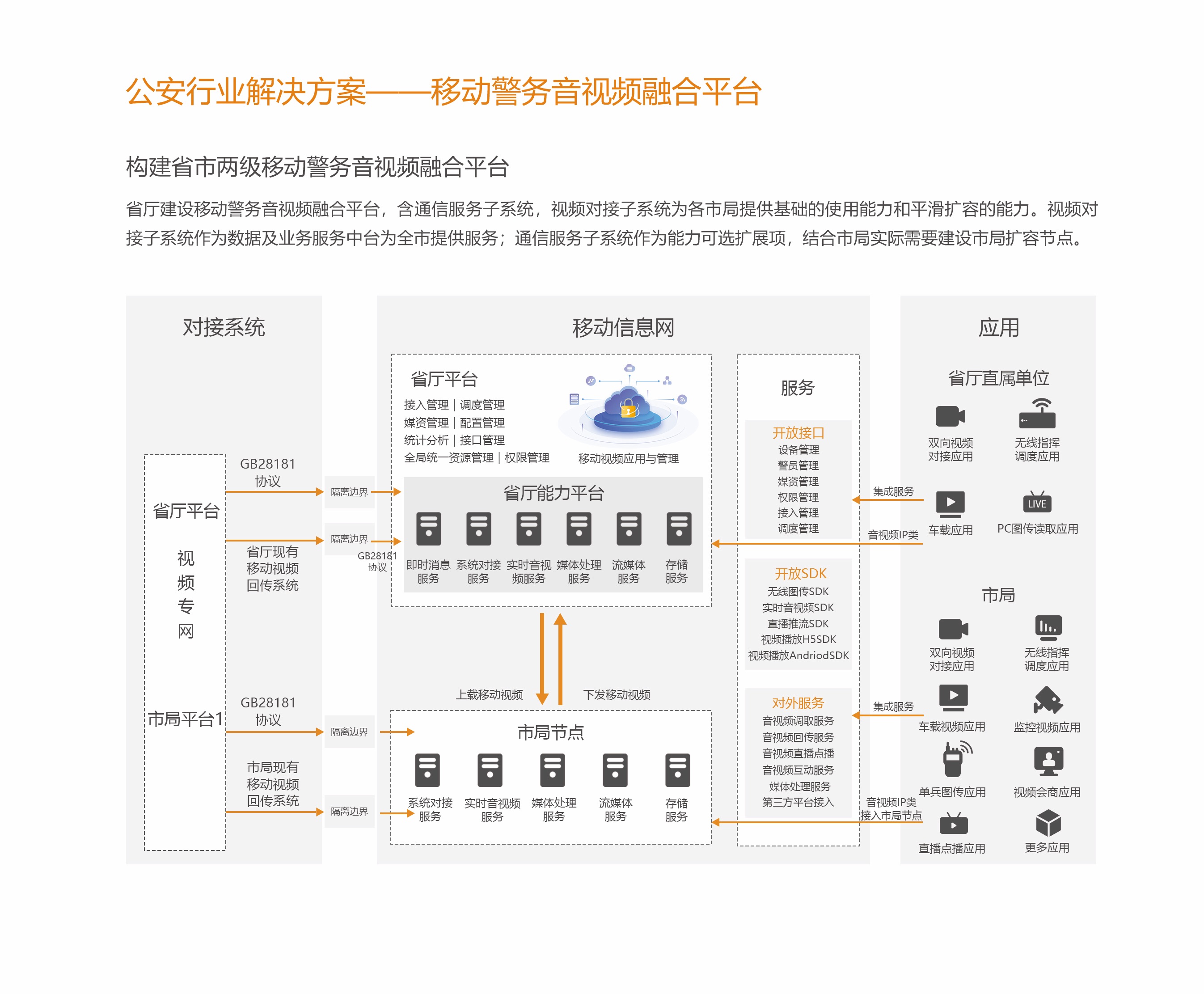電信易通以公安部移動(dòng)警務(wù)總體技術(shù)規(guī)范為依托,為公安行業(yè)提供了面向省廳、地市,多方面的移動(dòng)警務(wù)解決方案。其中包括:新一代移動(dòng)警務(wù)平臺(tái)建設(shè)、移動(dòng)互聯(lián)網(wǎng)服務(wù)子平臺(tái)建設(shè)、移動(dòng)警務(wù)音視頻融合平臺(tái)、行業(yè)雙系統(tǒng)定制終端等。