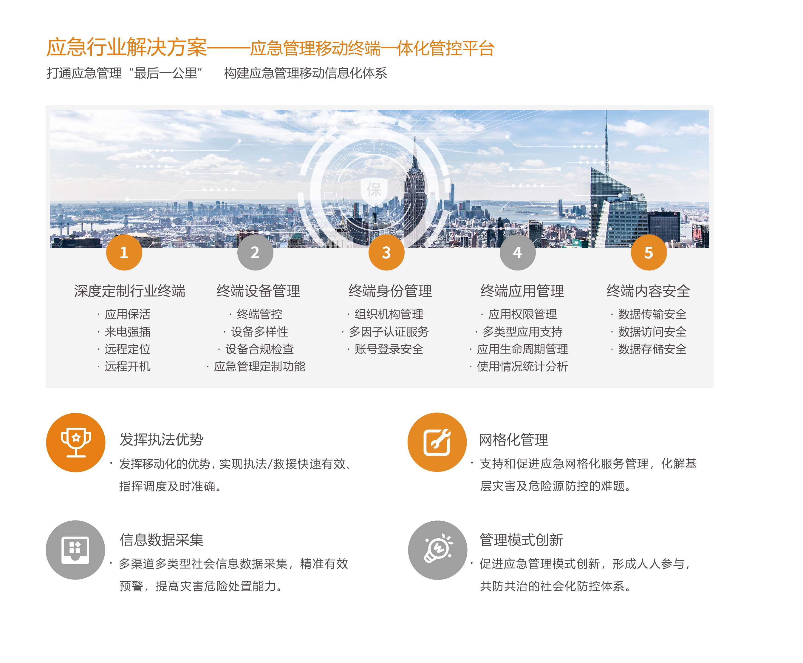 我司以聚焦提高應(yīng)急管理廳科學(xué)化、專業(yè)化、智能化、精細(xì)化水平為目標(biāo),積極探索現(xiàn)代“智”理的信息化解決方案,并基于“云、管、端、群”理念設(shè)計了“應(yīng)急管理移動終端一體化管控平臺”和“智慧化工園區(qū)安全管控平臺”。以信息化推進(jìn)應(yīng)急管理現(xiàn)代化,強化實戰(zhàn)導(dǎo)向和“智慧應(yīng)急”牽引,規(guī)劃引領(lǐng)、集約發(fā)展、統(tǒng)籌建設(shè)、扁平應(yīng)用,夯實信息化發(fā)展基礎(chǔ),補齊網(wǎng)絡(luò)、數(shù)據(jù)、安全、標(biāo)準(zhǔn)等方面的短板弱項,推動形成體系完備、層次清晰、技術(shù)先進(jìn)的應(yīng)急管理信息化體系,全面提升監(jiān)測預(yù)警、監(jiān)管執(zhí)法、輔助指揮決策、救援實戰(zhàn)和社會動員能力。